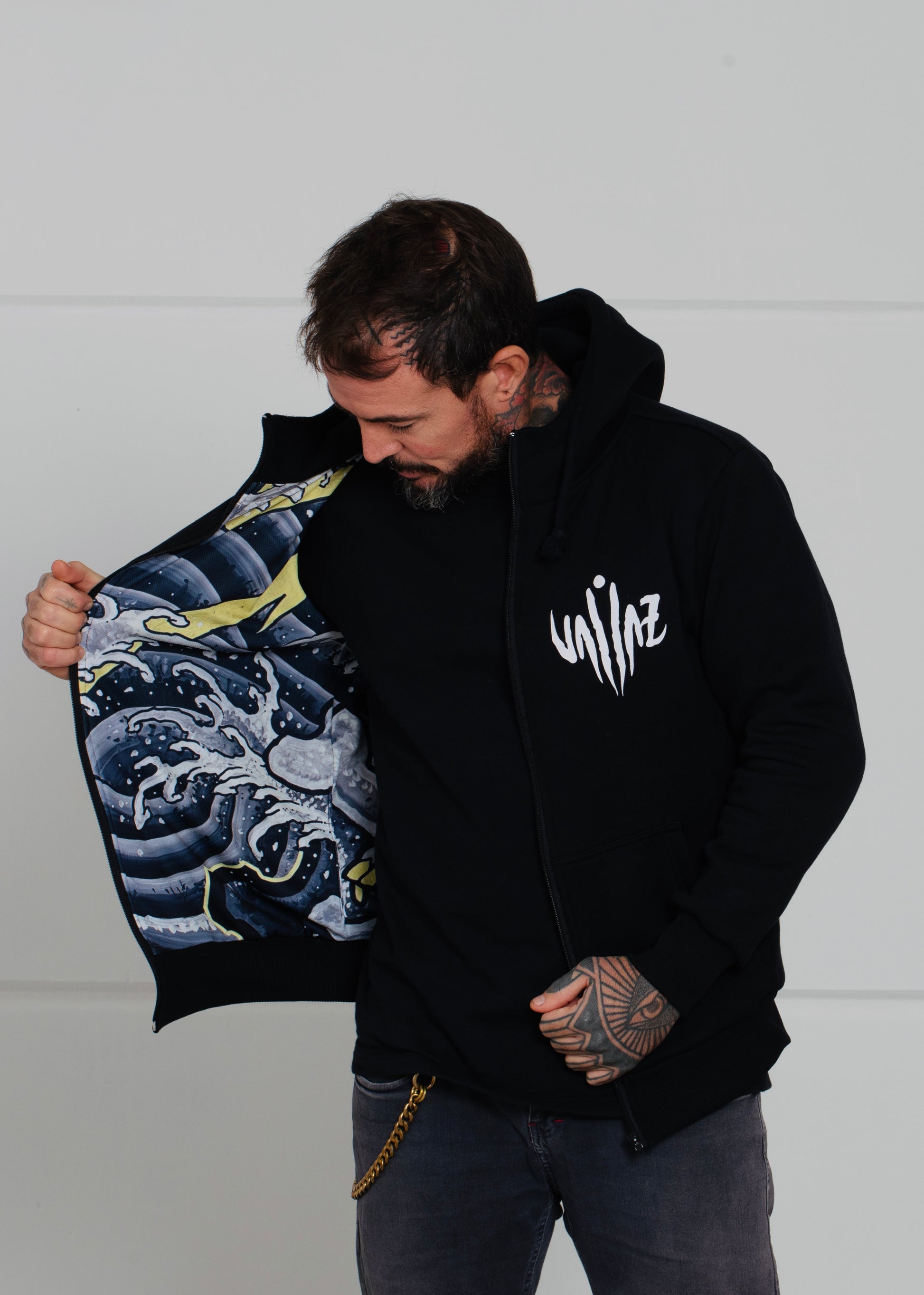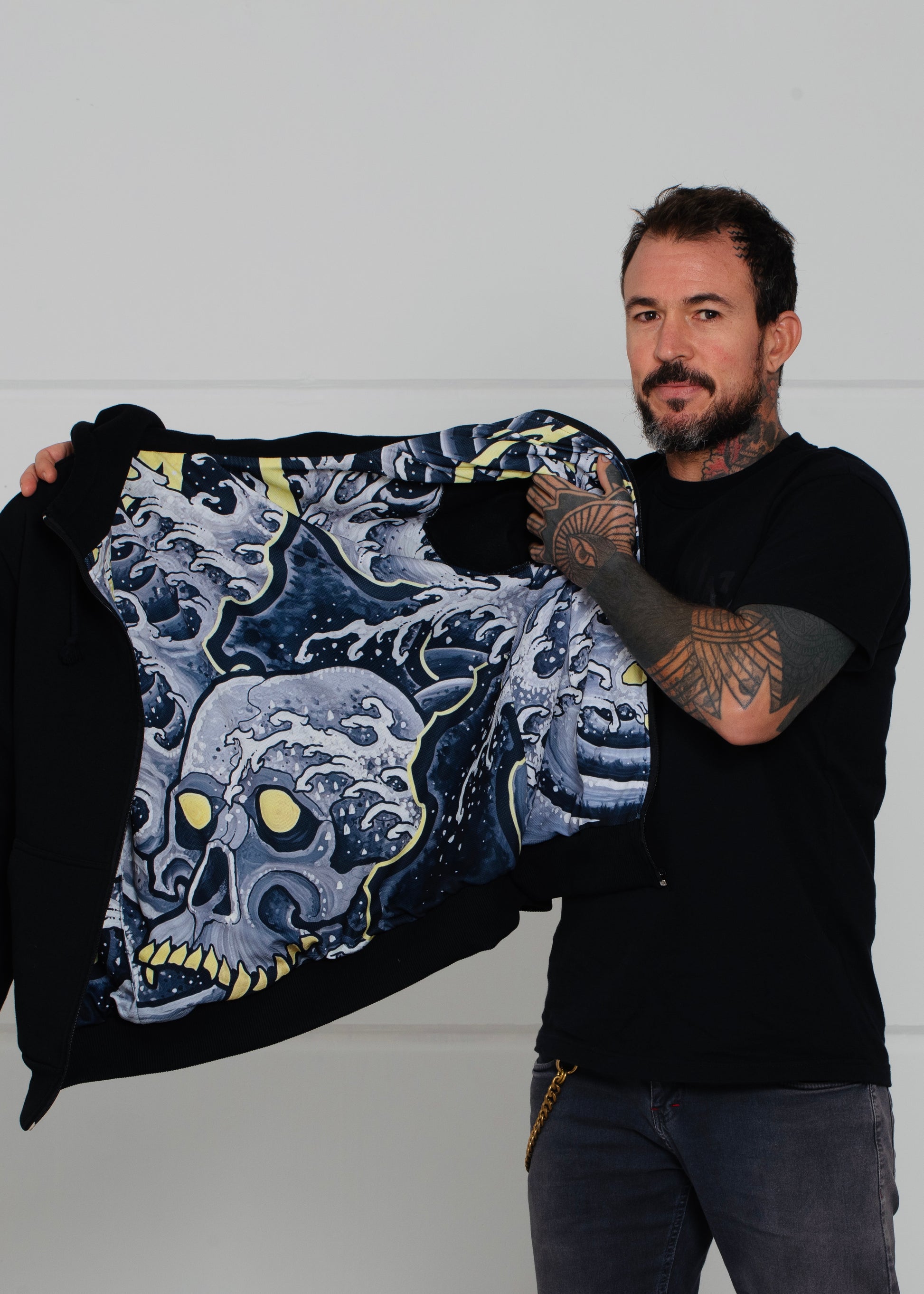 MOLETOM CANGURU ESPECIAL, PRETO, FORRO ESTAMPADO, 100% ALGODÃO